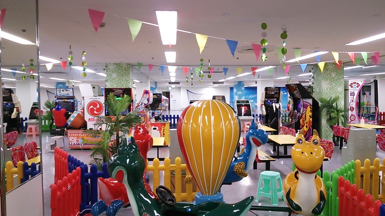 入場料を払うと中の遊具が遊び放題になるルールなのですが、ボールプールやメリーゴーランドなどの子供向け遊具や、太鼓ゲーム、エアホッケーなど家族で楽しめるゲーム機が色々揃っていて、子供連れで遊びに行く方にオススメだと思います。