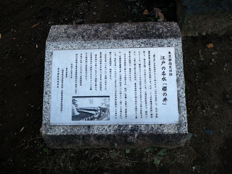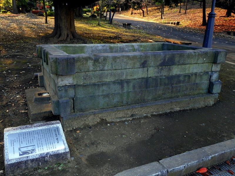 説明書きには三連式釣瓶井戸とあり、3つの桶が並んでおり通行人に重宝がられたとある。水源は上水から引いてきたものではなく、地下水を汲上げる掘抜井戸。昭和43年(1968年)に三宅坂近辺の道路工事の際に現在地に移設復元された。