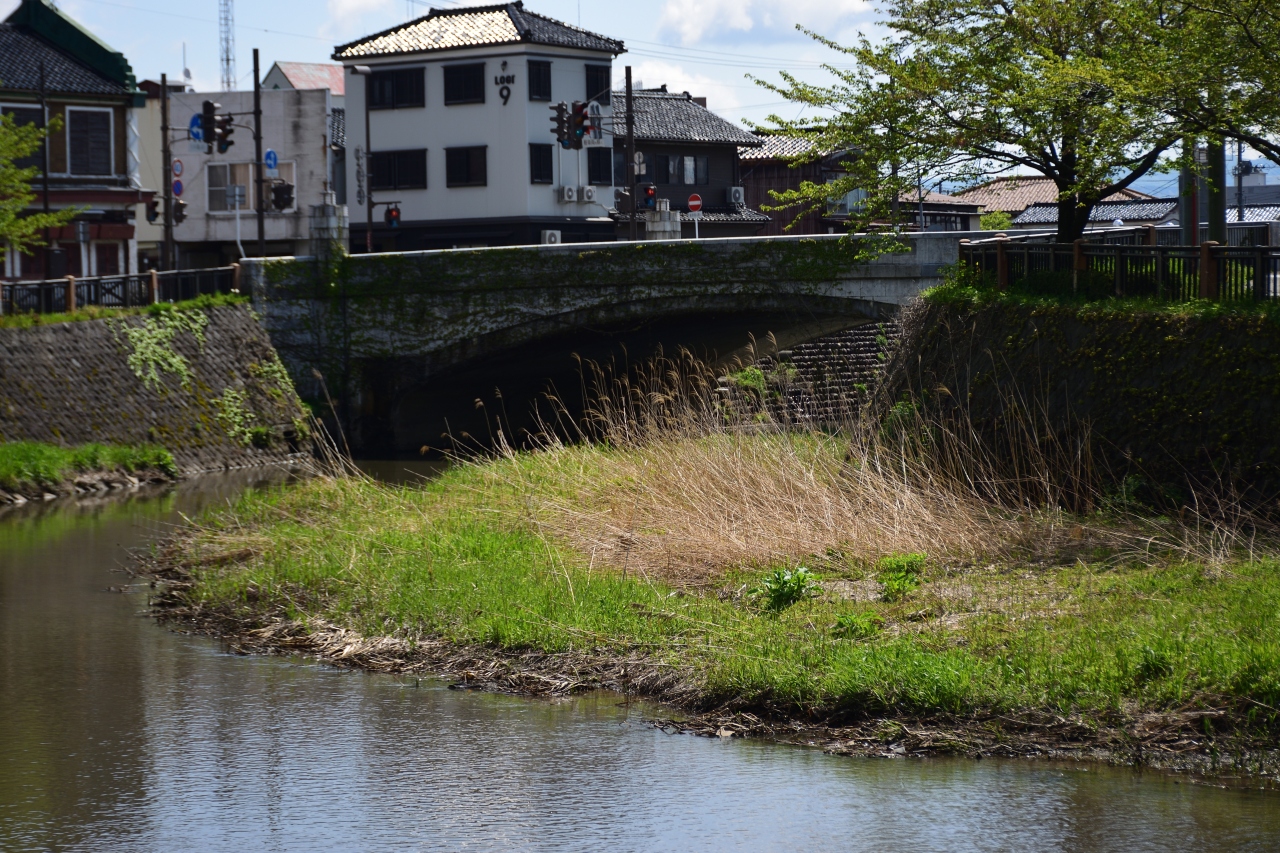 鶴岡市内を流れる新内川にかかる橋です。小さな川で橋も小さいのですが、コンクリートでできた頑丈な橋です。橋は自動車や自転車、歩行者などが通行しており、交通量は多めです。河川敷は春には花が咲き、きれいな景色が広がります。