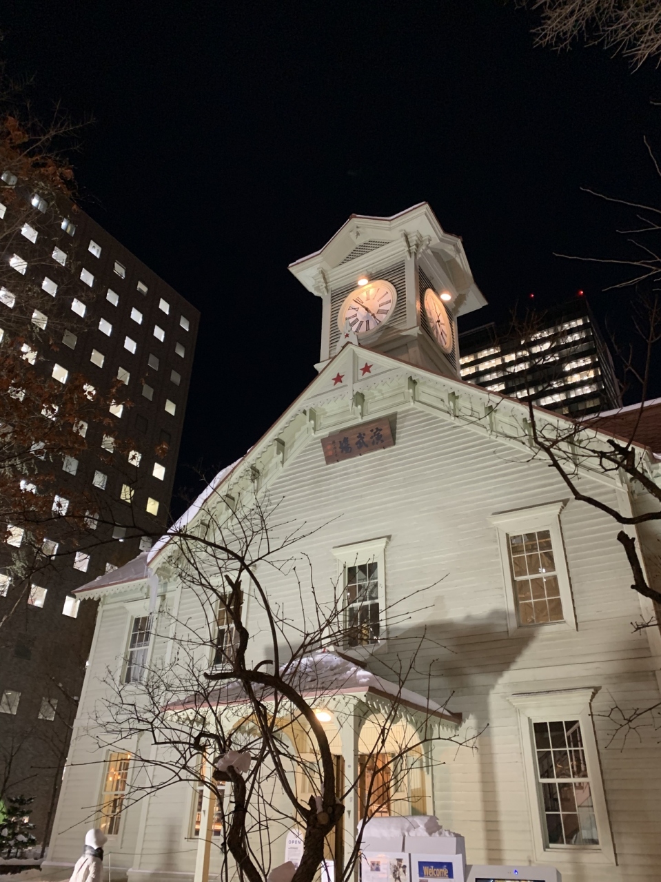 午後4時半ごろに行ってみると冬の札幌は暗くライトアップされていてとても綺麗でした。中を有料で見学できることができ新しい発見でした。ちょうど17時の鐘がなると閉館していてタイミング良かったです。写真を撮る階段もあり良かったです。