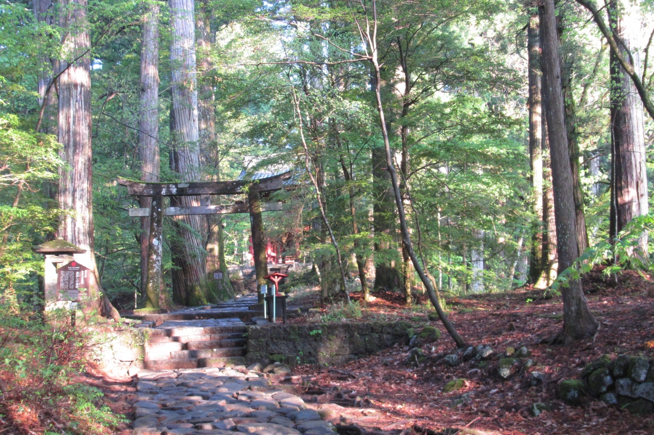 日光東照宮から一車線の道を通り時々すれ違い用のスペースがありますが