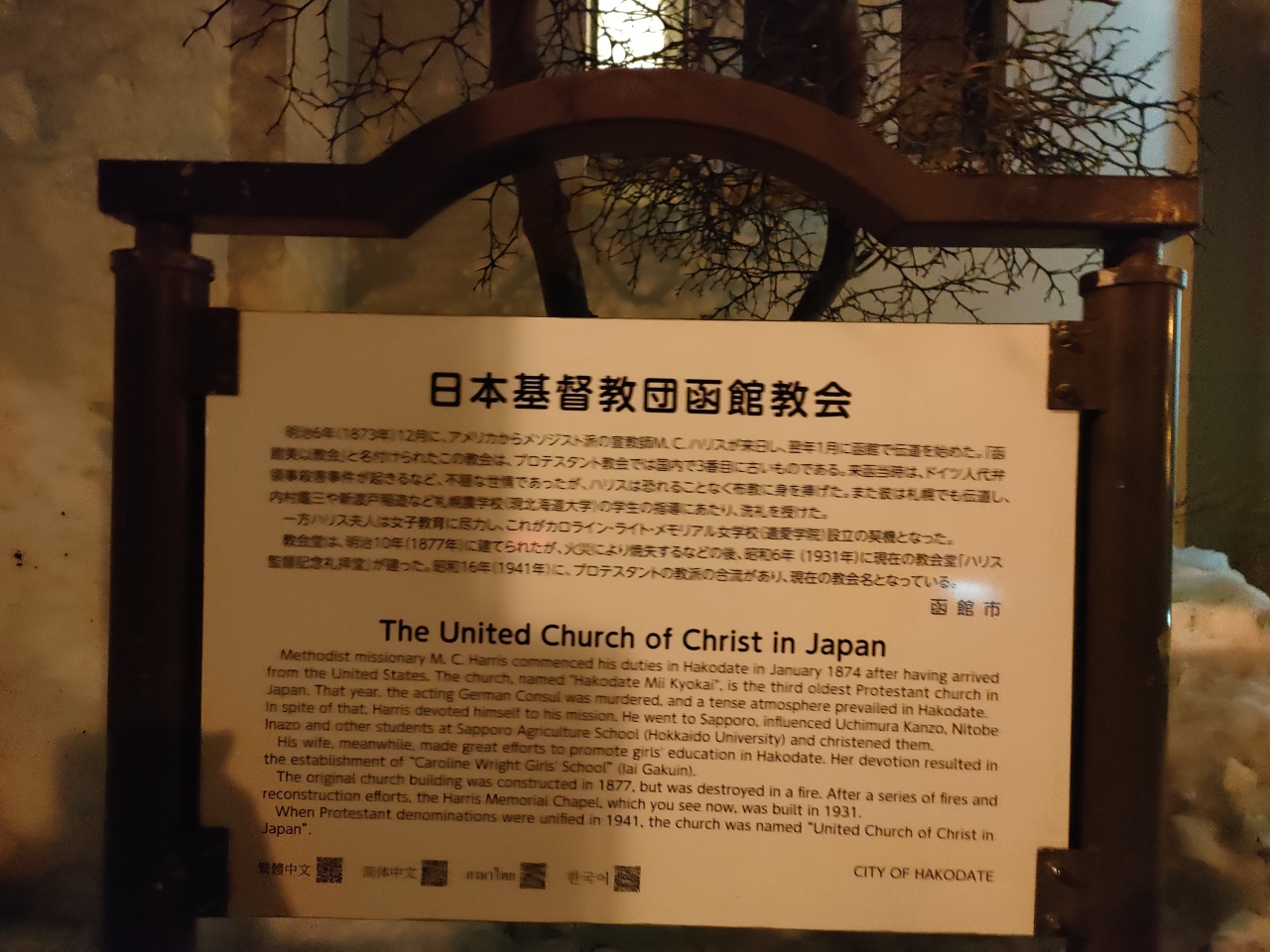 函館の元町地区の教会群では、クリスマスイブとクリスマスに一般の人も参加できる”市民礼拝”としてクリスマスミサをやっていましたが、コロナ禍以降、関係者のみとするものも多くなり、2022年についてはこちらの函館教会と聖ヨハネ教会のものが参加できるようになっていました。