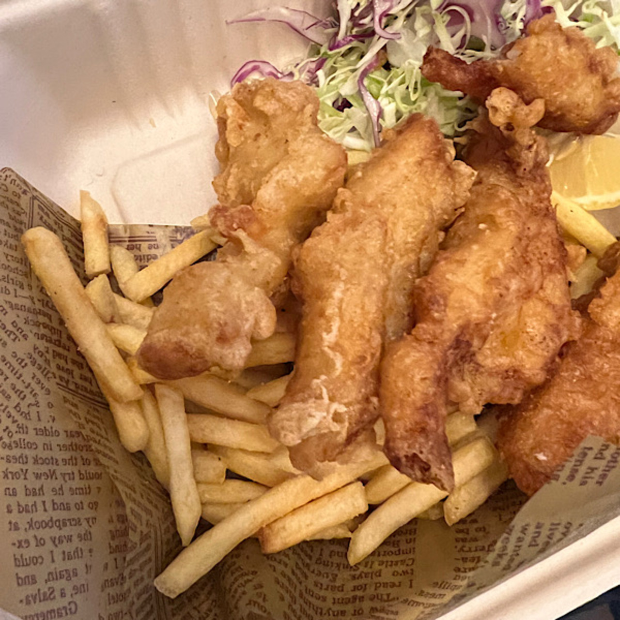 テイクアウトでフィッシュ&チップスを。魚のフライは味が濃く、タルタルソースとも良くあって美味しかったです。フライドポテトもカリッと揚がっていて良かった。フィッシュ&チップスが食べたくなった人にお勧めできるお店です。