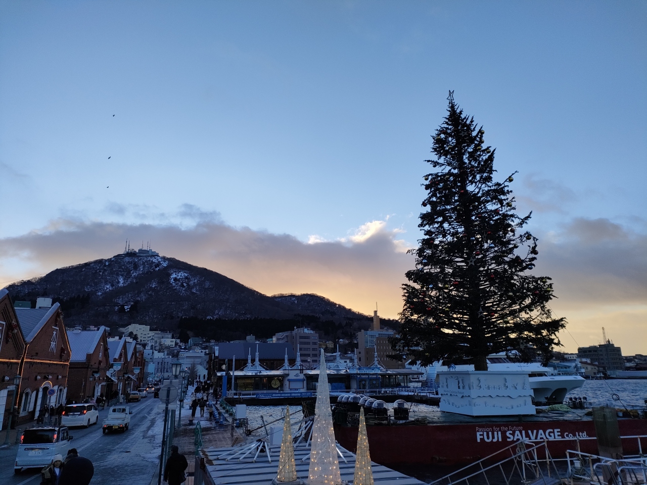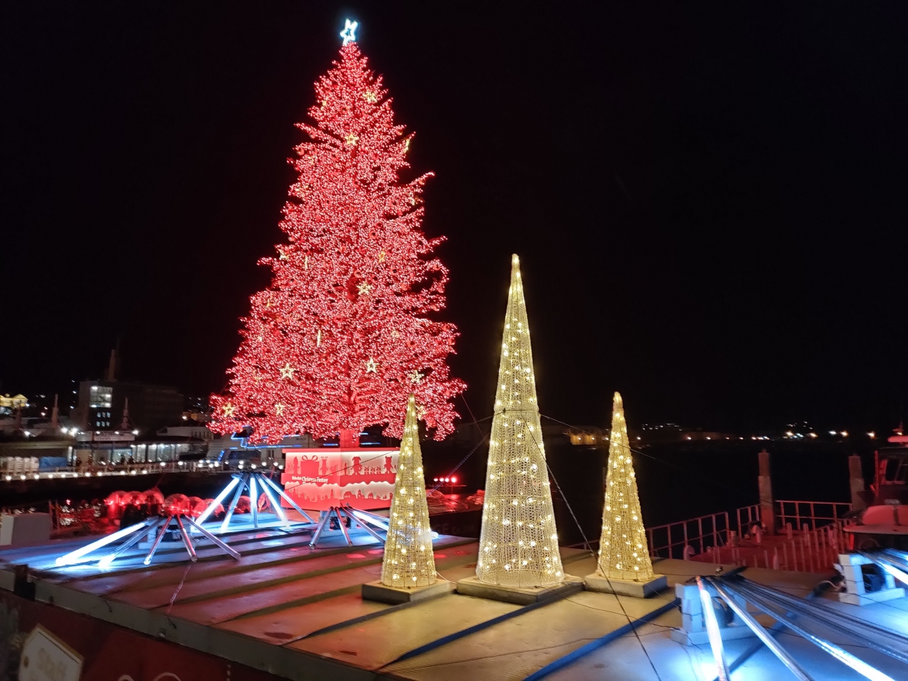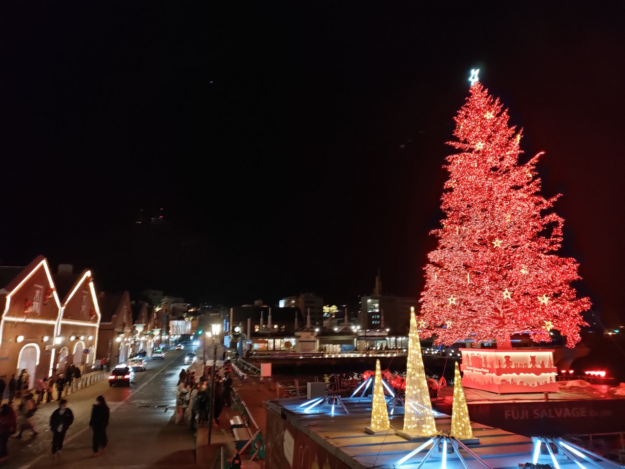 12月のはこだてクリスマスファンタジーの時期(2022年は12月1日~12月25日)は、巨大なクリスマスツリーも立って更に雰囲気が良くなります。ツリーは16時30分になるとイルミネーションが点灯しますが(~22時)、函館山が暗闇に完全に隠れてしまわないうちに一緒に眺めたいところです。