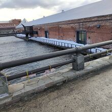 景色を特に気にしなかったり、赤レンガ倉庫でショッピングを楽しみたい場合や、寒さを避けたい(付近は冬場、海風が強い)場合などは、隣のBAYはこだての函館オルゴール堂の2階から、運河を越える橋を渡ってお店伝いに移動しても良いかもしれません。