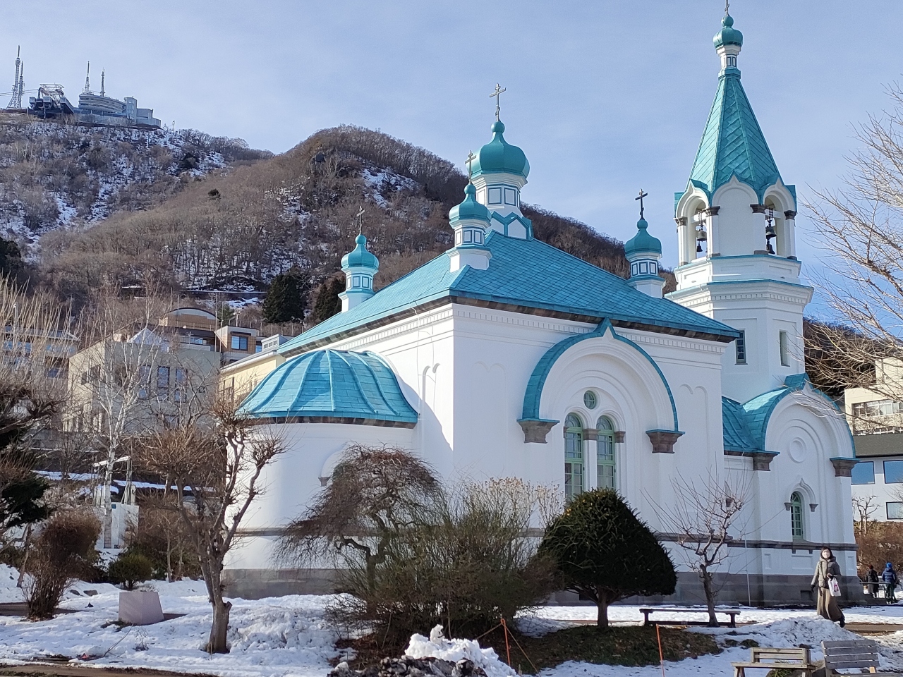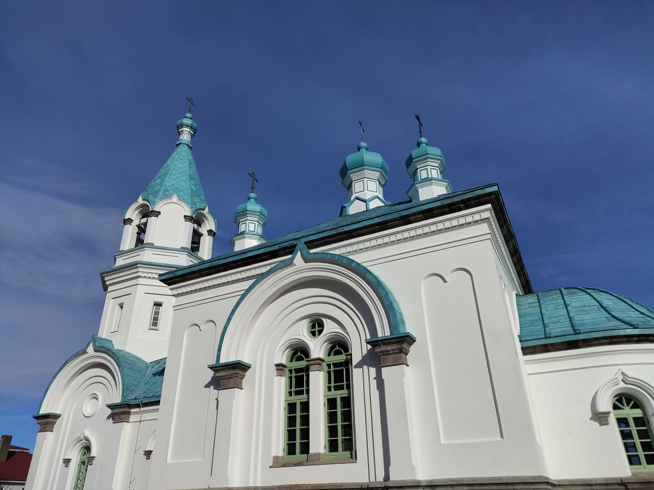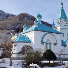 外観は、塗装がすっかりきれいになり、白地の壁にマラカイト色の明るい屋根となり、日差しのある日に訪れるとよく映えると思います。