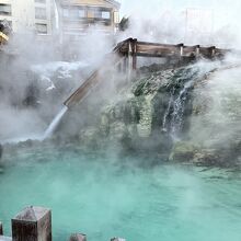大量のお湯からは温泉特有の匂いが立ち込めていました