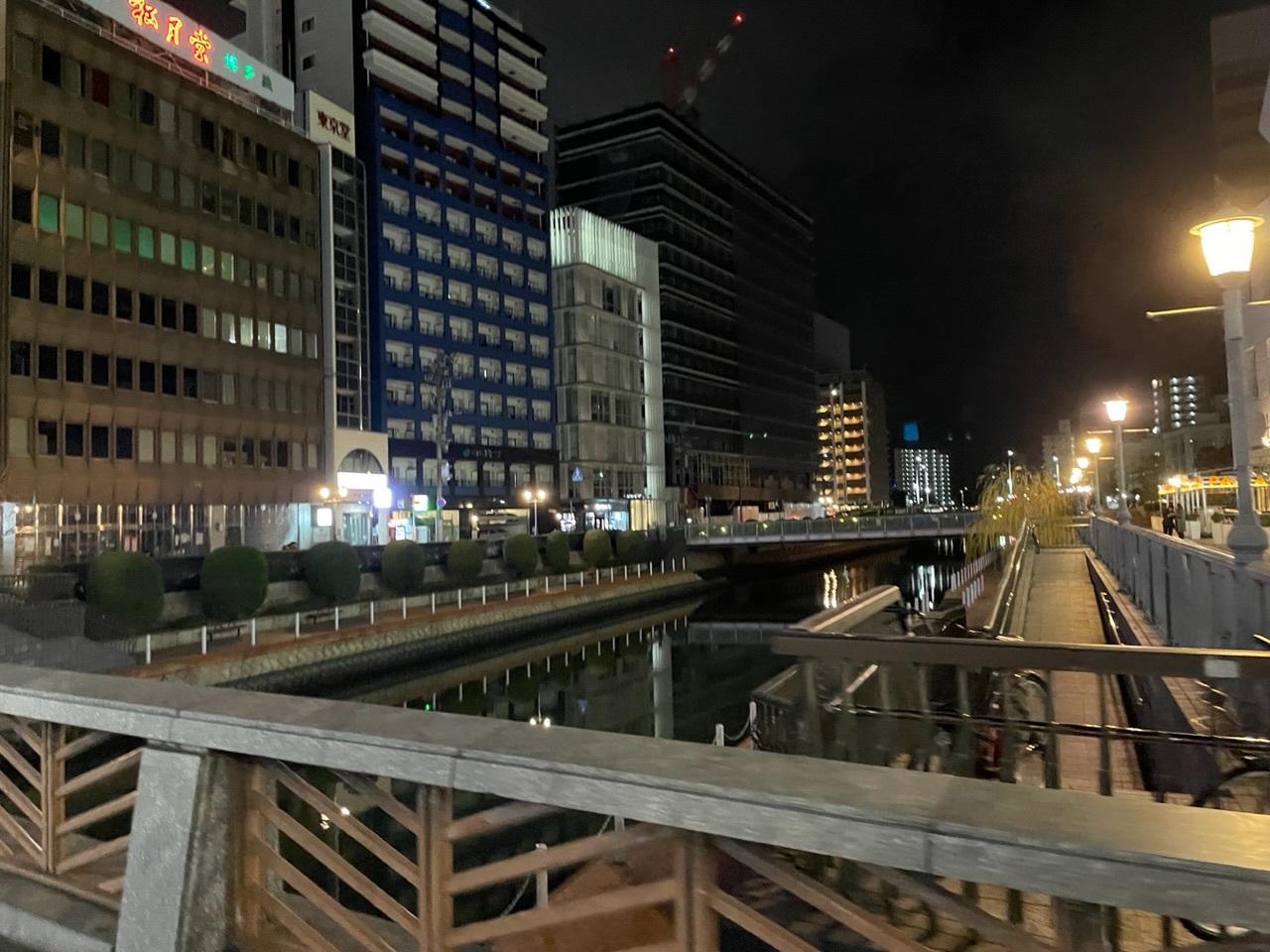 高いの川ですので、綺麗ではありませんが、夜には街のライトが反射してとてもきれい。