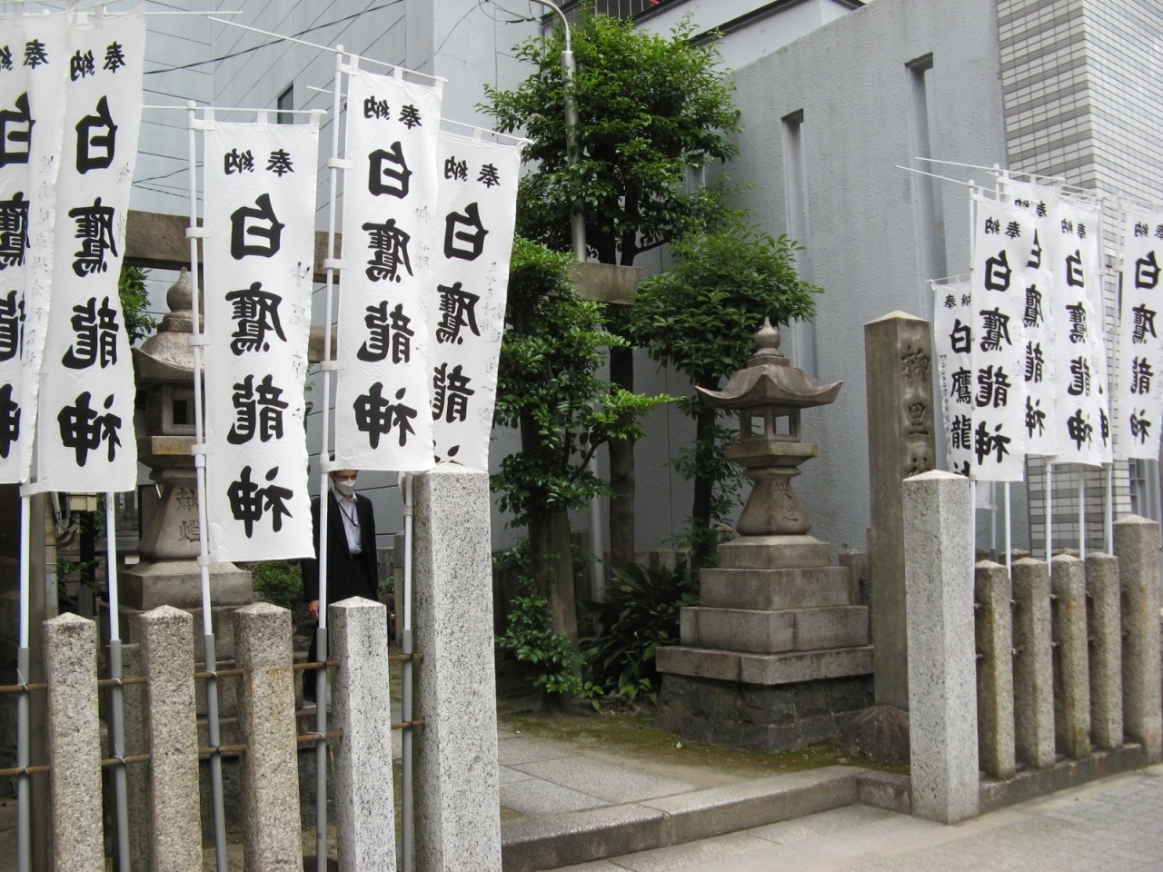 名鉄古屋駅から南に歩いて5分足らず、広小路通の一本南の柳街道に面して鎮座されています。入り口には白鷹龍神と書かれた白い幟がたくさん上っています。ビルに挟まれた小さな神社で駒札が無く由緒などが判りませんでした。