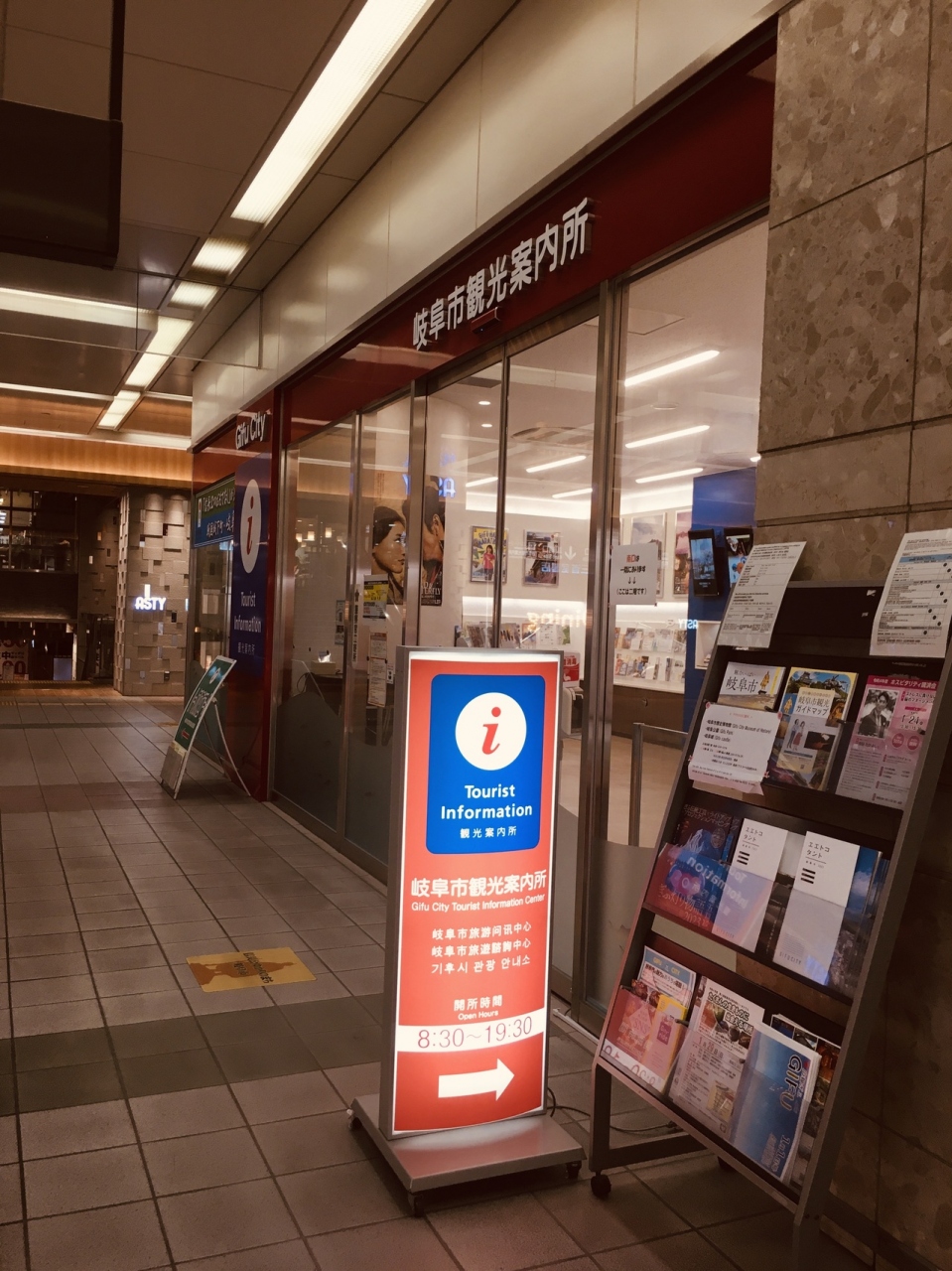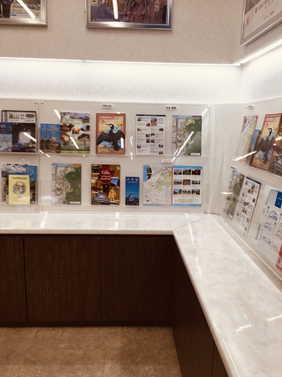 JR岐阜駅の改札口を出ると直ぐ右側にありました。敷地が広めで案内人も駐在していて、パンフレット、チラシ数も豊富でした。空間部分が広く人がたくさん入っても圧迫感がないです。岐阜城の模型の展示もあります。