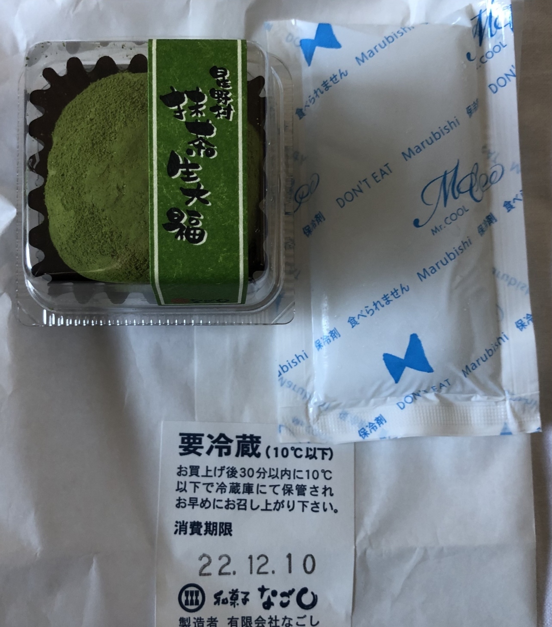 小倉井筒屋地下1階にあるお店です。八女の星野村のお抹茶が外側に振りかけられた「なごし」が美味しいお店です。「なごし」がどんなものかというと、外側が抹茶、「雪見だいふく」のような柔らかいお餅、クリーム、あんこ。となっていて、上品な美味しさで、苦いお茶とよく合います。1個215円。