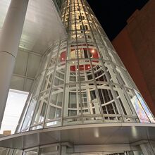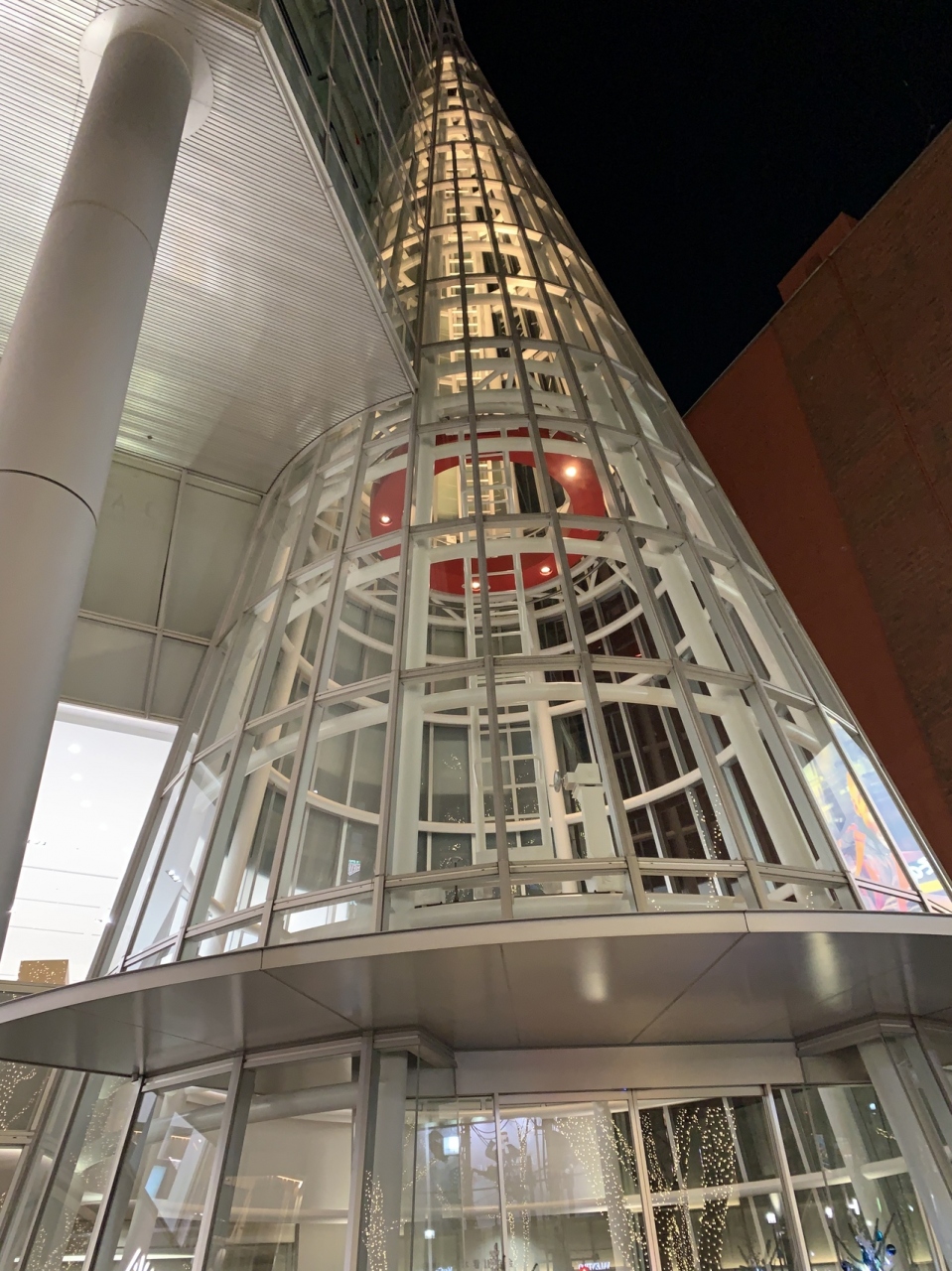 円錐形のガラス張り部分が特長的で、下から見ると、赤いリングもあります。