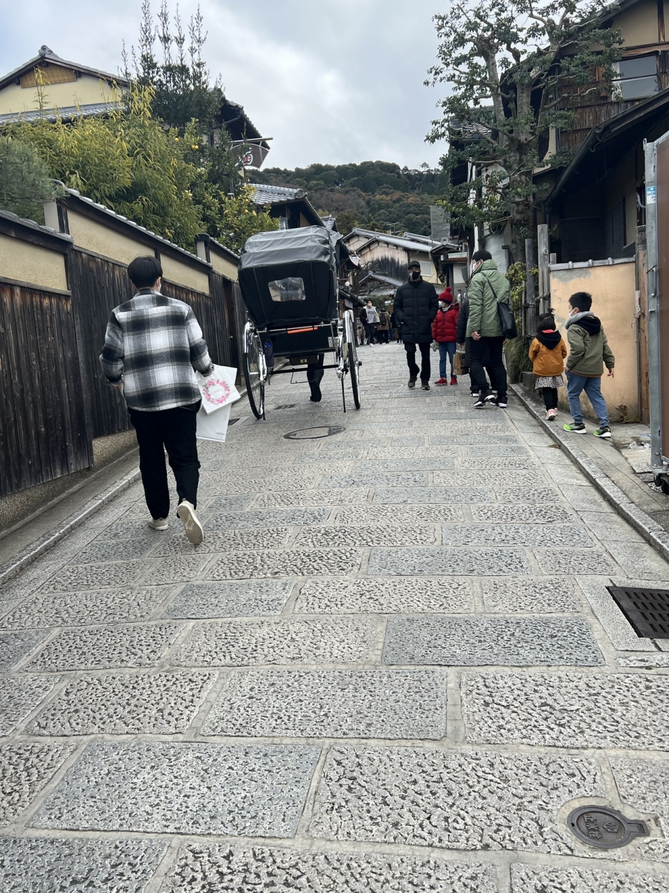 京都1人旅で通りました。八坂神社から清水寺に向かう途中の坂なので人混みはあります。お店が軒を連ねてますね。