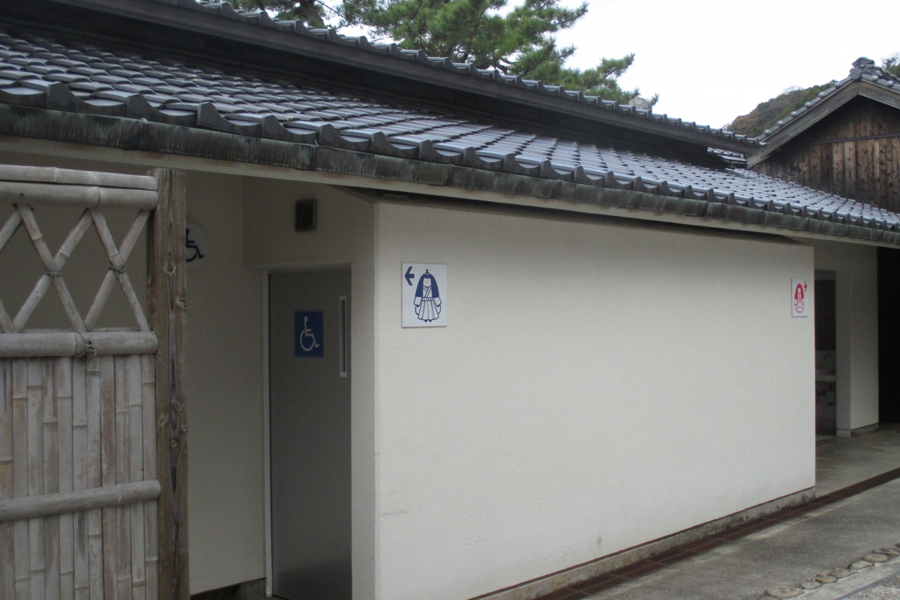 余談ですが、都稲荷社への路地に出雲大社教祖霊社の公衆トイレがありました。その男女マークが可愛かったので、紹介しておきます。