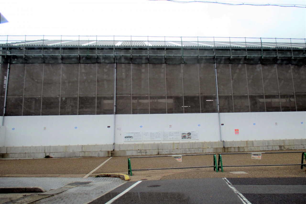 若かりし頃、初めて出雲を訪れた時に降り立った、JRの大社駅の駅舎はたいへん強く印象に残っていました。未だにそれに勝る駅舎を見た記憶がありません。今回、旧大社駅を訪れるのは青春の記憶を取り戻すことでもありました。ところが、通りから曲がって、正面を見たら・・・。工事の養生幕が目の前を塞いでいました。工事期間は2021年(令和3年)からで、終了は2025年(令和7年)12月20だそうです。