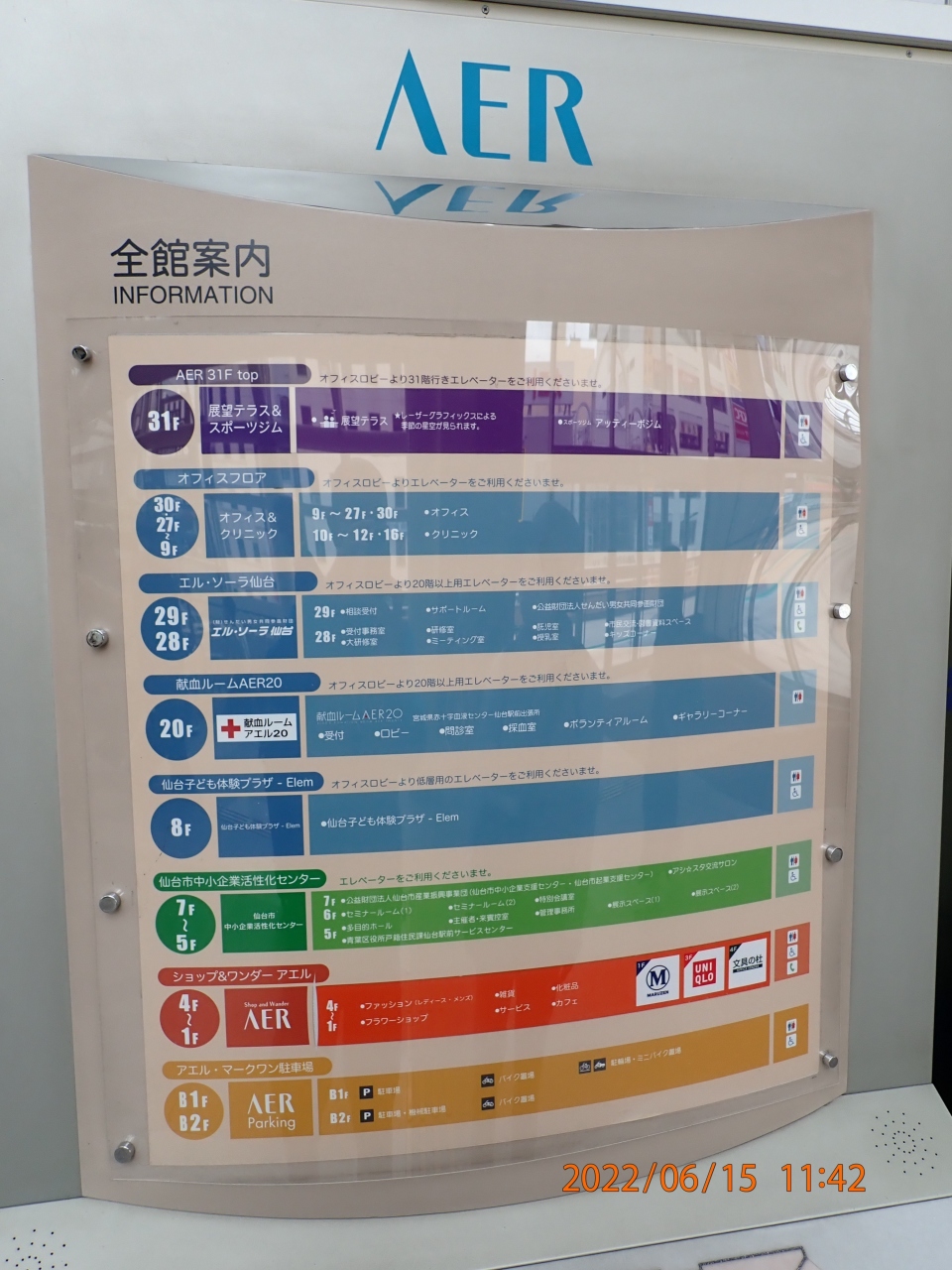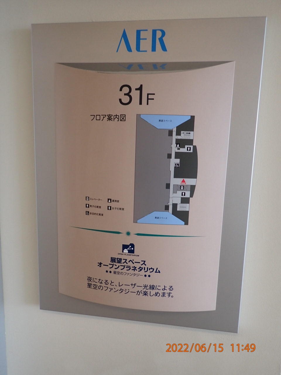 仙台市観光で立ち寄りました。AER展望テラスは、JR仙台駅近くにある富豪ビル「アエル」の最上階の31階にある無料の施設です。建物が大きく、展望テラス行きのエレベータを探しました。専用のエレベーターがあり、31階と地下1階のみの行先ボタンのエレベーターでっす。展望スペースには「オープンプラネタリウム」が設置されていて、夜は別の楽しみも可能な施設でした。31階なので、やはり展望は最高でした。