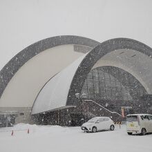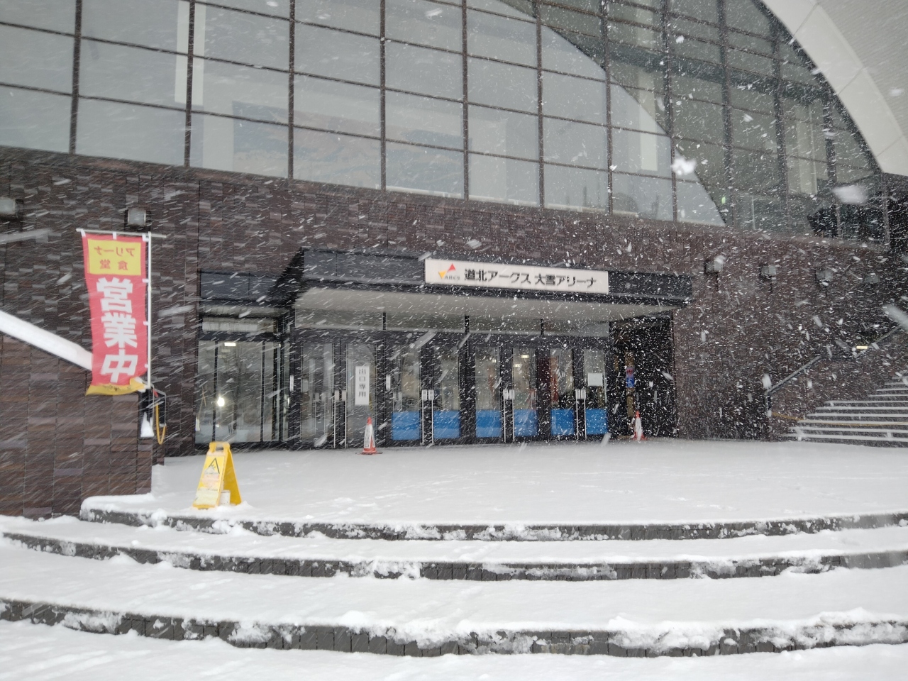 旭川駅の南側のサケが遡上する忠別川にかかるクリスタル橋を渡って5分ほど南に歩いたところにある旭川大雪アリーナ。