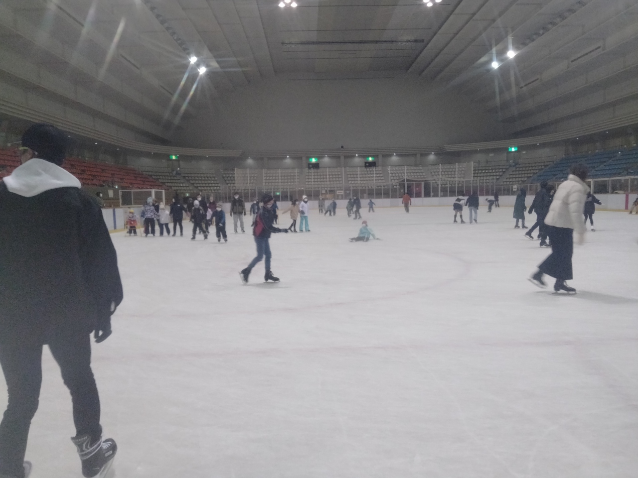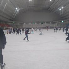 冬場の今はスケートリンク、その他の季節は体育館となっている多目的アリーナで、バスケットボール2面、バレーボール3面、テニス3面、バドミントン9面、卓球20台の競技が可能なんだそうです。