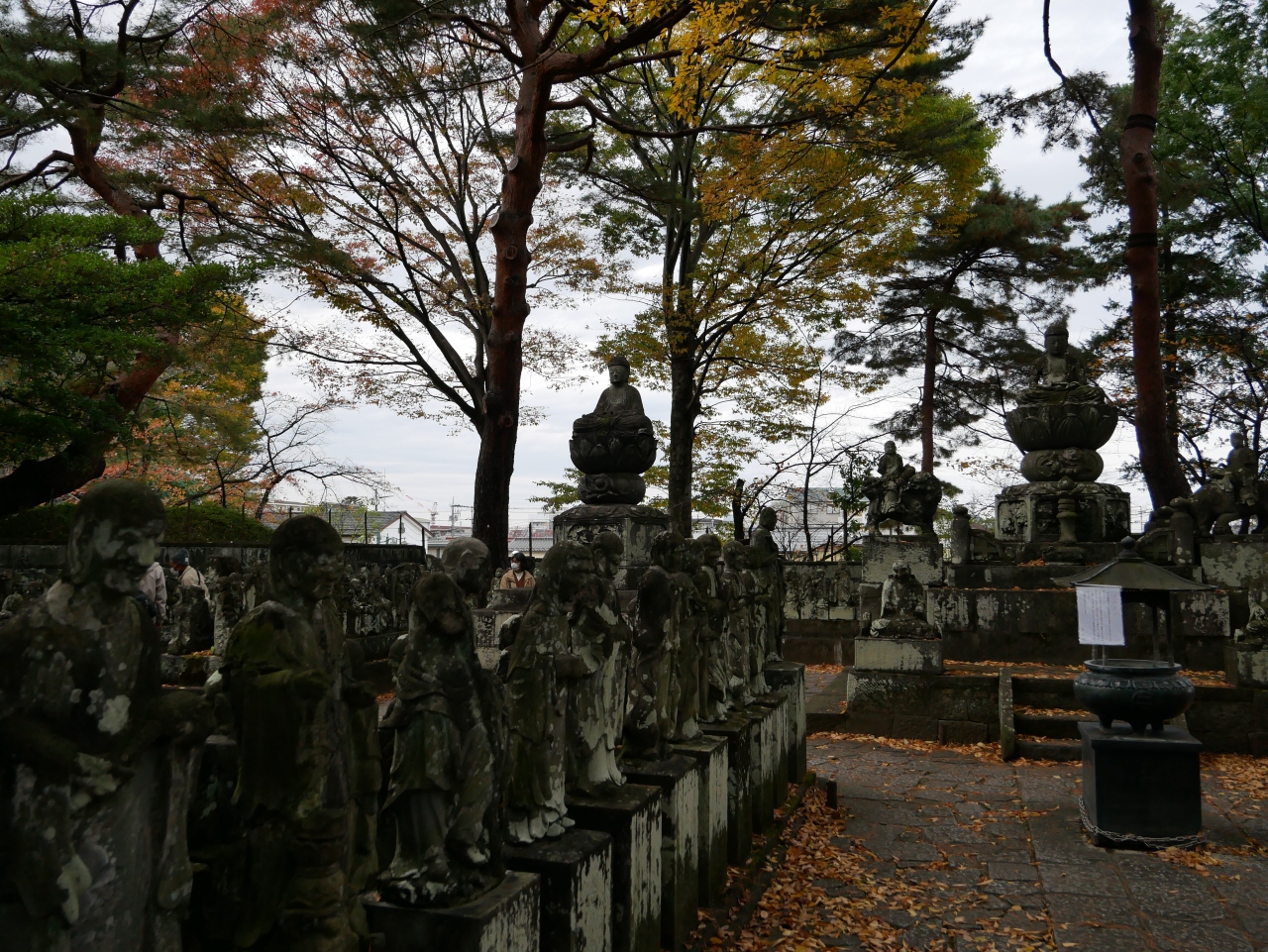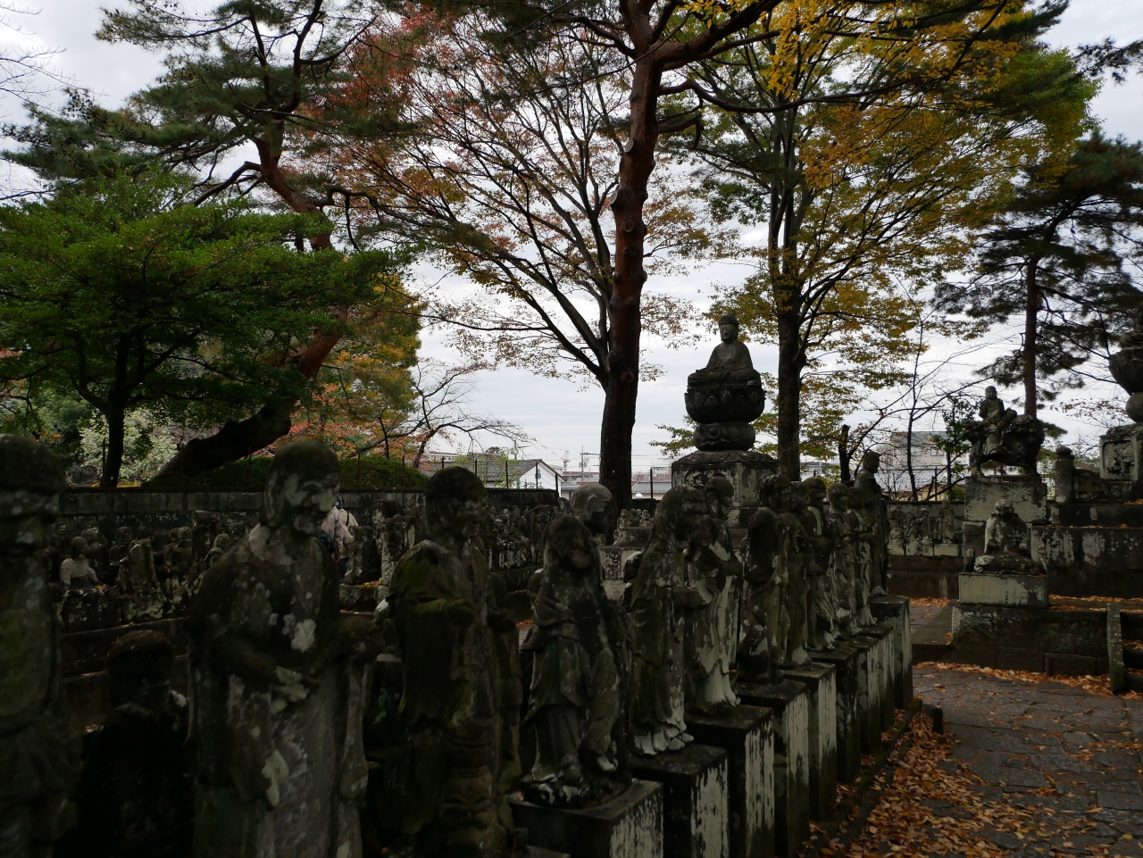 ちょっとした塀に囲まれた場所にたくさんの羅漢様が並んでいました(屋外です。)。