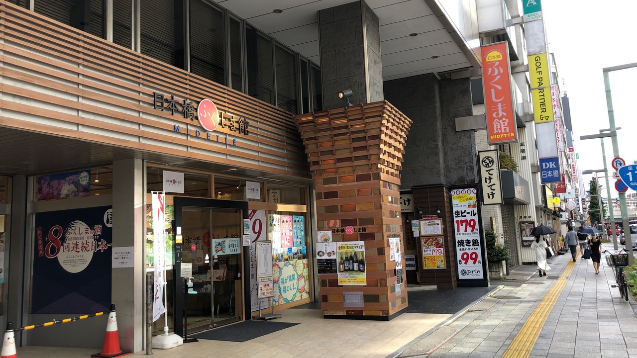 JR新日本橋駅・東京メトロ三越前駅の近くにあります。福島県のアンテナショップです。フルーツの産地のイメージがあった福島県ですが、お酒造りも盛んのようです。ふくしま館の前には、淡路島・洲本市のアンテナショップもあり、この辺りは、アンテナショップが集まっています。