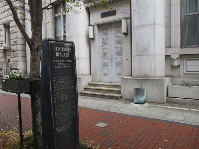 安田銀行横浜支店として建てられトスカナ式の列柱に大理石、アーチ窓、雷紋等の重厚な建物とレトロなデザインが見ごたえありました。正面の四本の列柱が力強くルスティカ積み石材の外壁や付柱の古典様式が重厚感と風格を漂わせ勢いある銀行らしい建物でした。現在は東京芸術大学の施設として利用されているようです。みなとみらい線馬車道駅の本町通りと万国橋通りの交差点にありました。