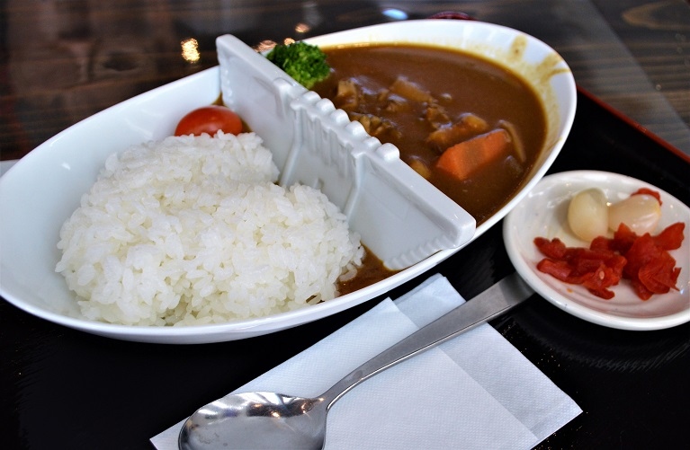 ここはかなり凝っておりダム堰堤を陶製の造形として御飯とカレーを区切っているところがほかとは異なるところだ。
