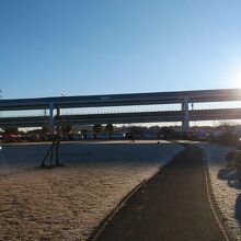 相模川に隣接しており、野球場やサッカー場、グラウンドが整備されていた。訪問時は朝だったが、何かのイベントが行われており多くの自動車が駐車、キャンプのテントの張られにぎやかだった。