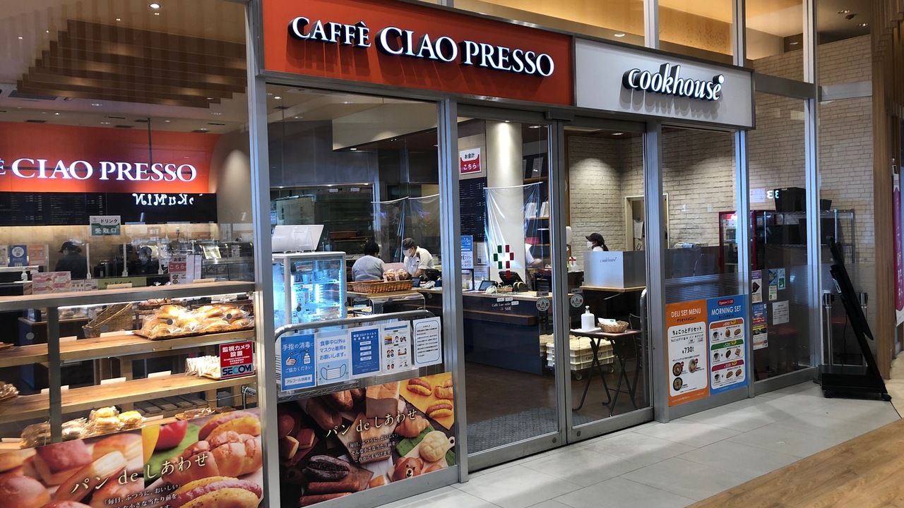 近鉄・大和西大寺駅の駅ナカです。ホームの上に店があるので、電車利用時に訪問できます。成城石井、カフェ、ベーカリー、柿の葉寿司の店、酒屋さん、花屋さんなどが集まっています。お気に入りは、ゆったりとした「カフェチャオプレッソ」です。