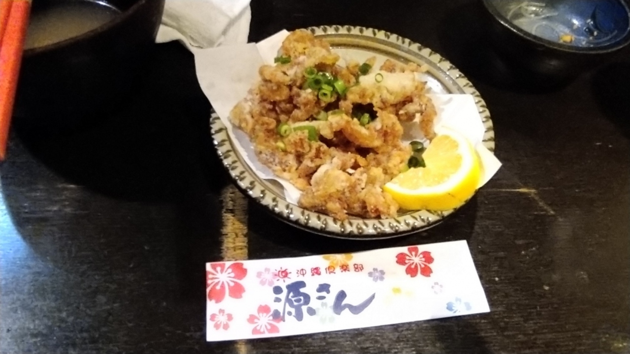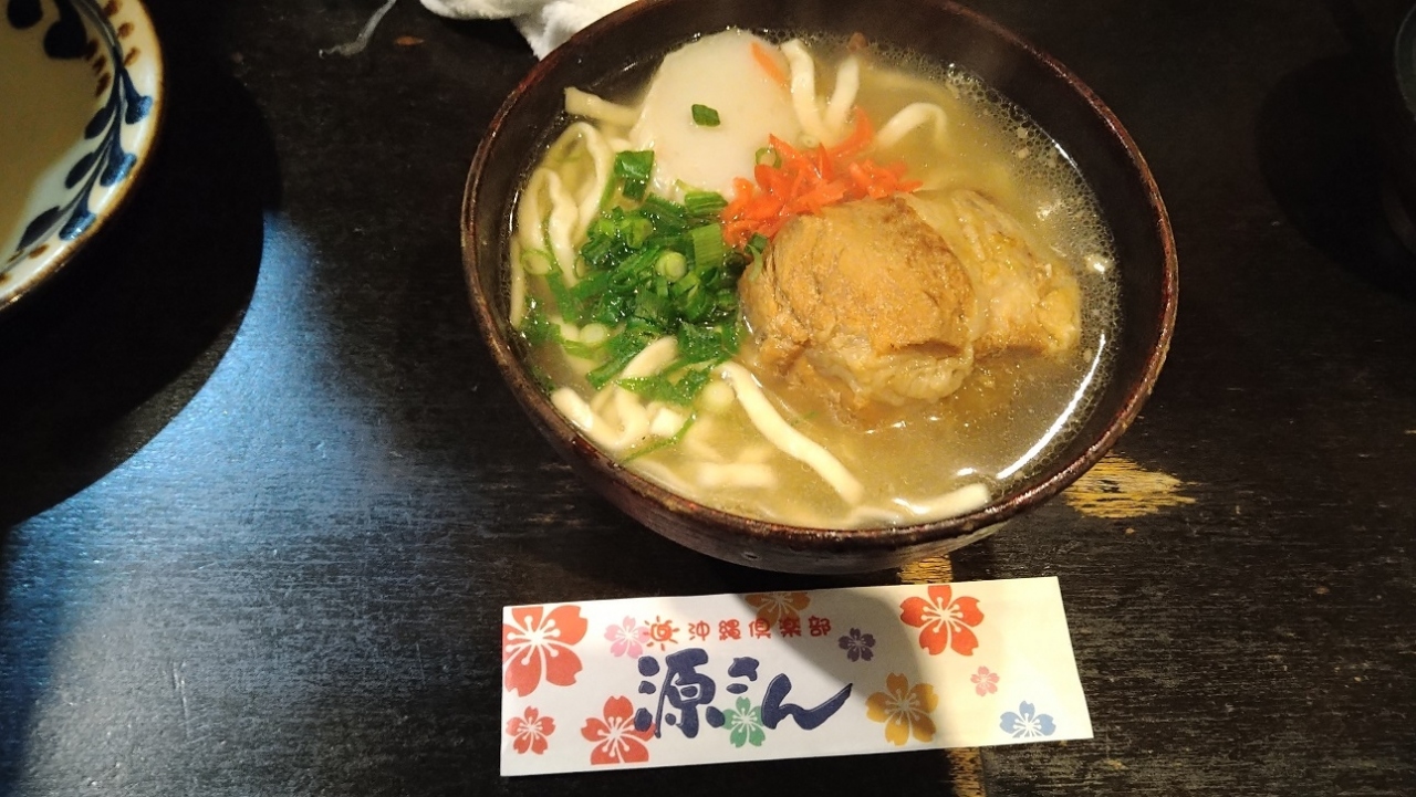 新橋駅烏森口から徒歩3分程度、細い路地にある沖縄料理の居酒屋さんです。夕食で利用し、シークワーサーサワー、ミミガー唐揚げ、ソーキそばハーフをいただきました。生まれて初めてミミガー唐揚げをいただきましたが、予想外に柔らかく、お酒との相性は抜群。柔らかい豚肉の塊が入っていたソーキそばも美味しく、満足の夕食となりました。