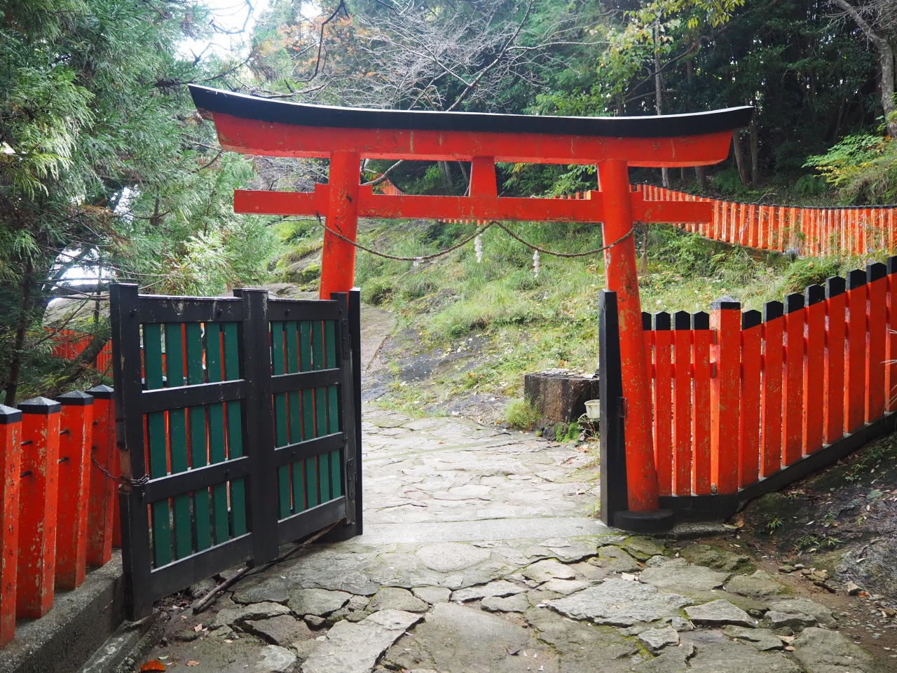 急な石段を這い上がるように昇る、神社の為でしょうか。