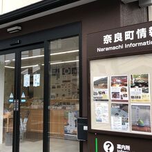 ならまちの北端、ならまち大通り沿いにある観光案内所です。奈良町(ならまち)は、歴史的な街並みが残るエリアです。小さな道が多く、寺や店が点在しているので迷いやすいです。こちらの情報館でマップをもらうのがおすすめです。
