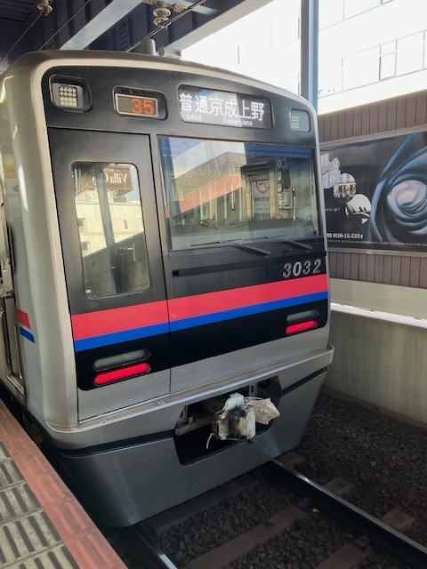 京成線には、いろいろな路線があるので些か注意が必要ですが、慣れればとても便利な交通手段です。この写真は、青砥駅で撮りました。実は、横浜から直通です。京急→都営浅草線→京成線がつながっています。この距離なら、時間も一時間くらいで移動できます。
