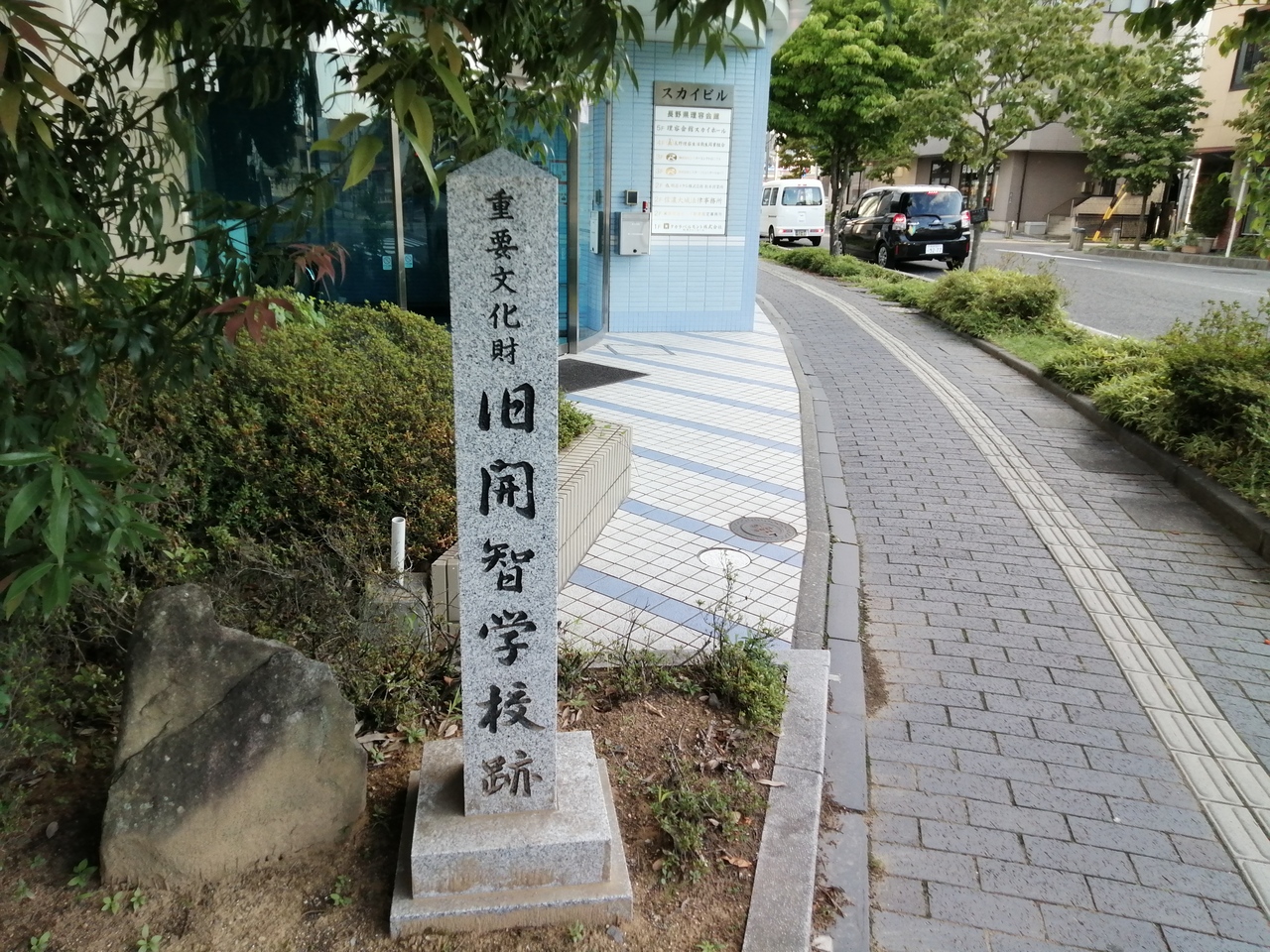 明治6年に開校された開智学校の跡地です。現在は交差点の一角にそれを示す石柱が建てられているのみですが、明治9年に建てられた校舎が松本城の北400mの場所に移築されています。この校舎は日本国内でもっと古い学校の1つで、その造りは中央部に八角塔屋を持つ擬洋風建築。国宝に指定されおり、見ればその美しさに見惚れてしまうほどの建物です。一般公開(有料)されているので興味のある方はぜひ見学してみて下さい。