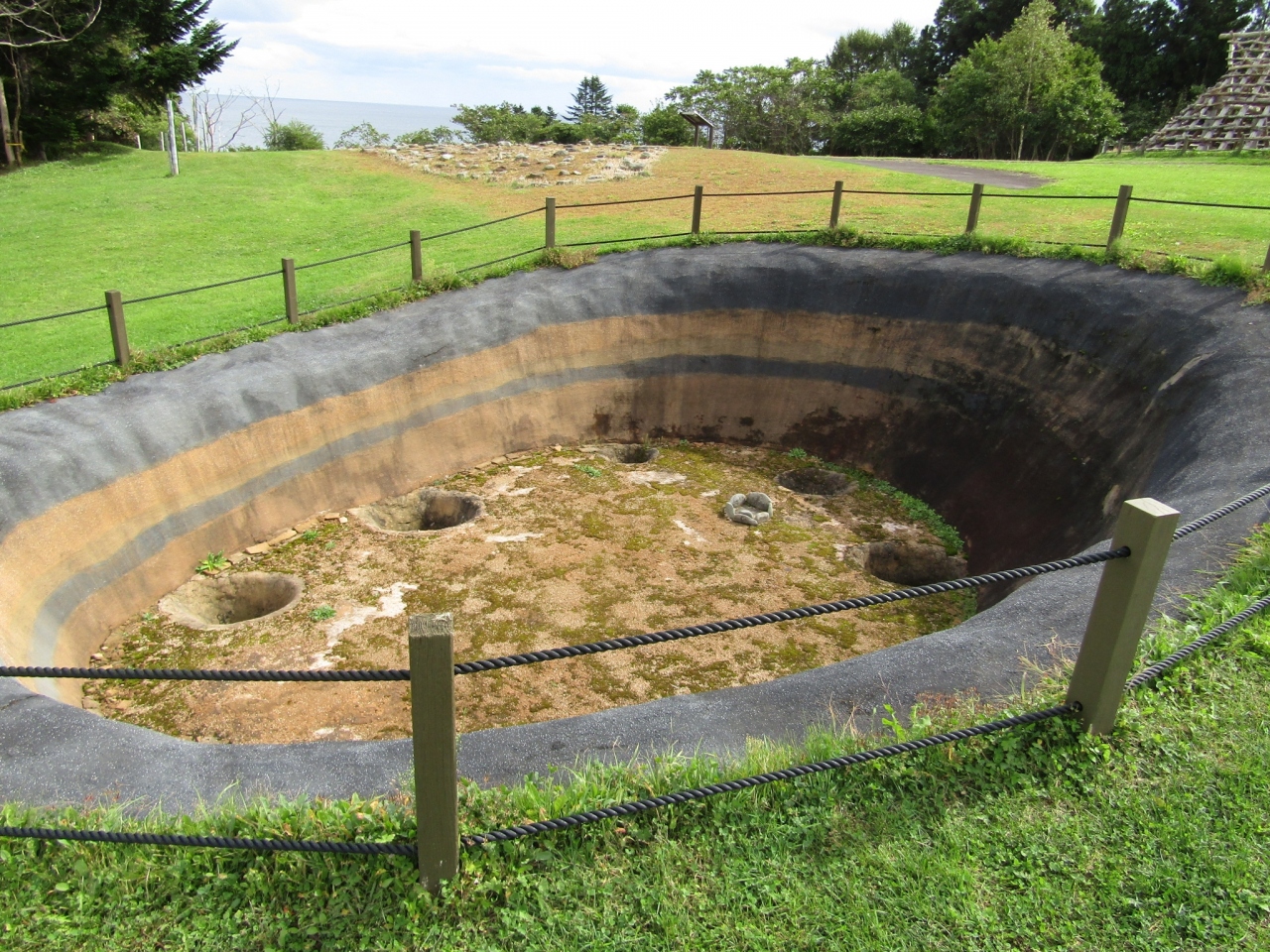 垣ノ島遺跡などに比べると範囲は狭いもののまとまっていて、復元や見学路はしっかり整備されており、大船遺跡の特徴の深い堀込みを見ることができます。