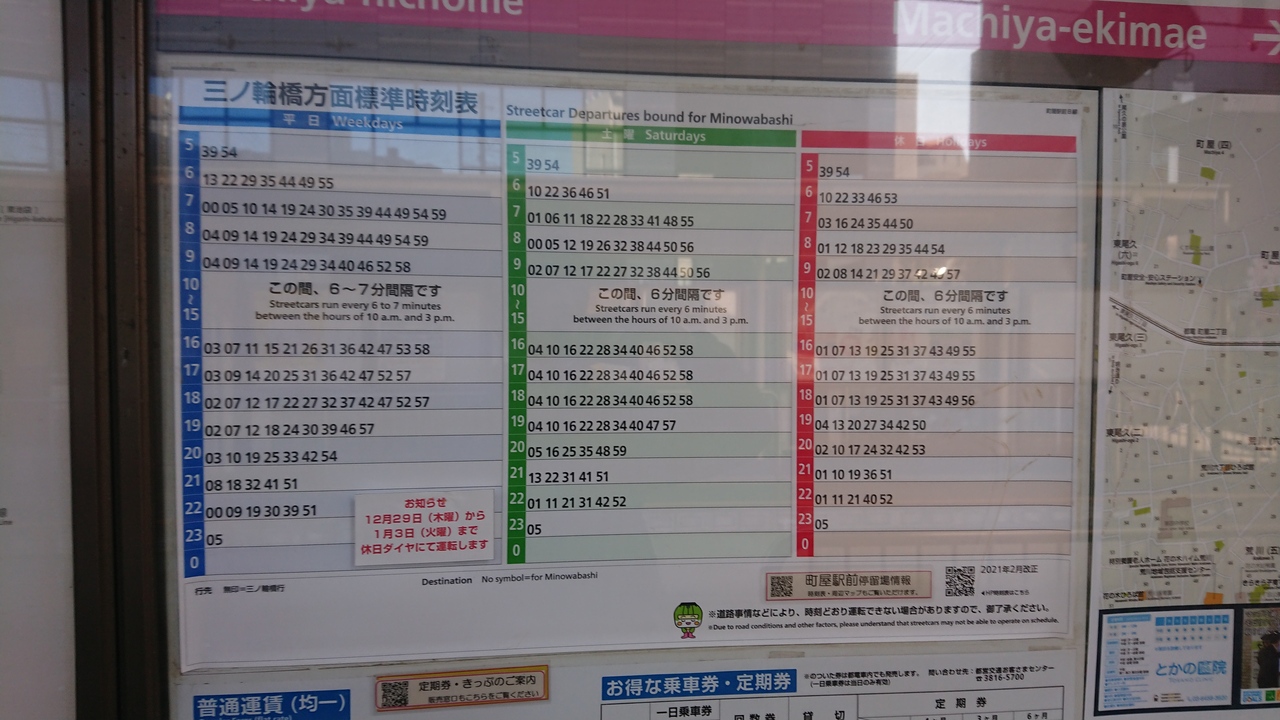 本数は日中6~7分間隔と多く運賃は165円とリーズナブル。
