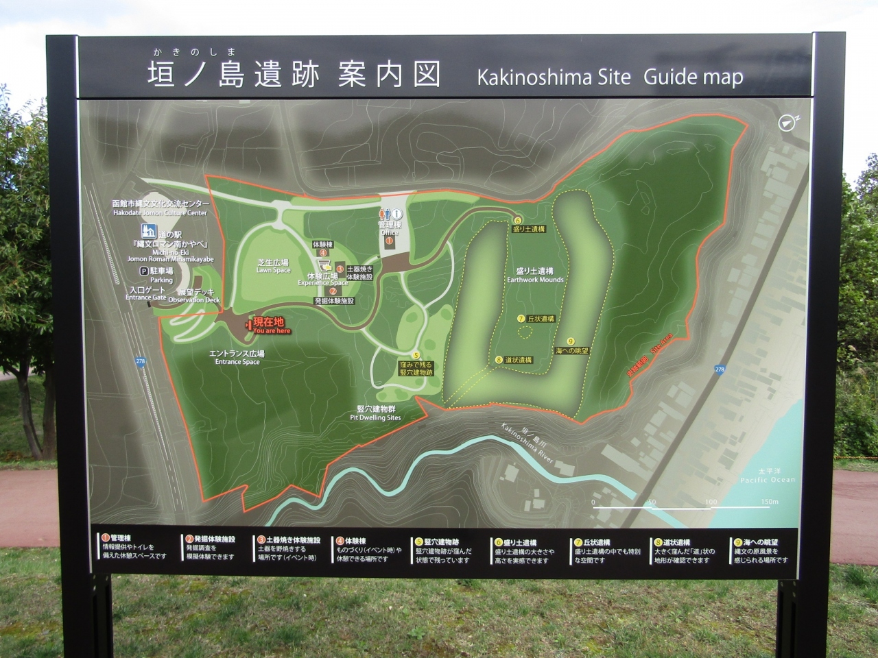 垣ノ島遺跡は紀元前7,000年から紀元前1,000年頃迄の縄文時代の広大な集落で、この遺跡の特徴は住居域と墓域が分かれていることだそうです。