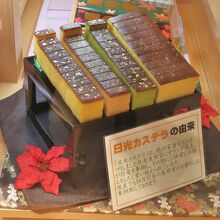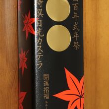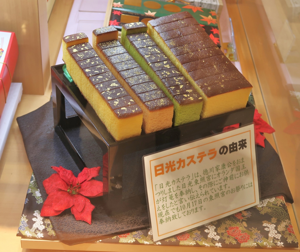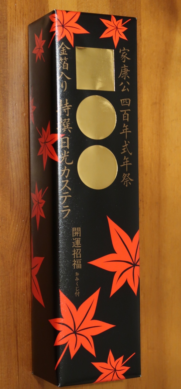 日光に本店があるカステラ専門店のようですが、宇都宮駅ビルのパセオにも出店していたので、店員さんおすすめの特選日光カステラを購入しました。パッケージデザインに金があしらわれ、カステラの上にも24金の金箔がトッピングされていて、おめでたい雰囲気です。おみくじも入っていました。特選カステラは、日光カステラより卵黄が3割多いので、濃厚な味わいでした。店員さんは、「特選カステラにはザラメが付いています」と説明していましたが、どこにザラメがあるのか最後までわからないほどの極少量だったのが残念でした。意外なことに製造はいちご農園の「いちごの里ファーム」のようで、農園の苺ピュレをカステラ生地に混ぜたいちごカステラも販売していました。