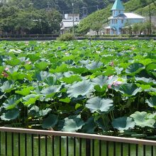池を一周する遊歩道があり、思い思いにたくさんの人が歩いていました。蓮の季節で見事でした。