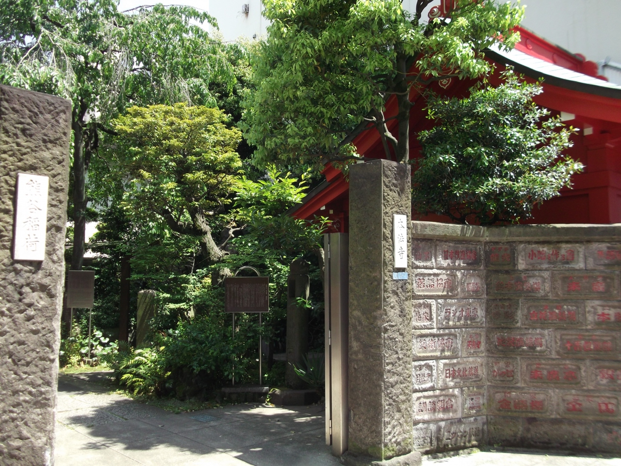地下鉄田原町駅から歩いて1分ほどのところにある日蓮宗の寺院です。賑やかな浅草通りから少し入っただけの場所ですが、境内はずいぶん静かで緑も多いです。本堂は近代的な造りで特徴はありませんが、境内には、はなし塚、筆塚、稲荷神社などの見所もあります。