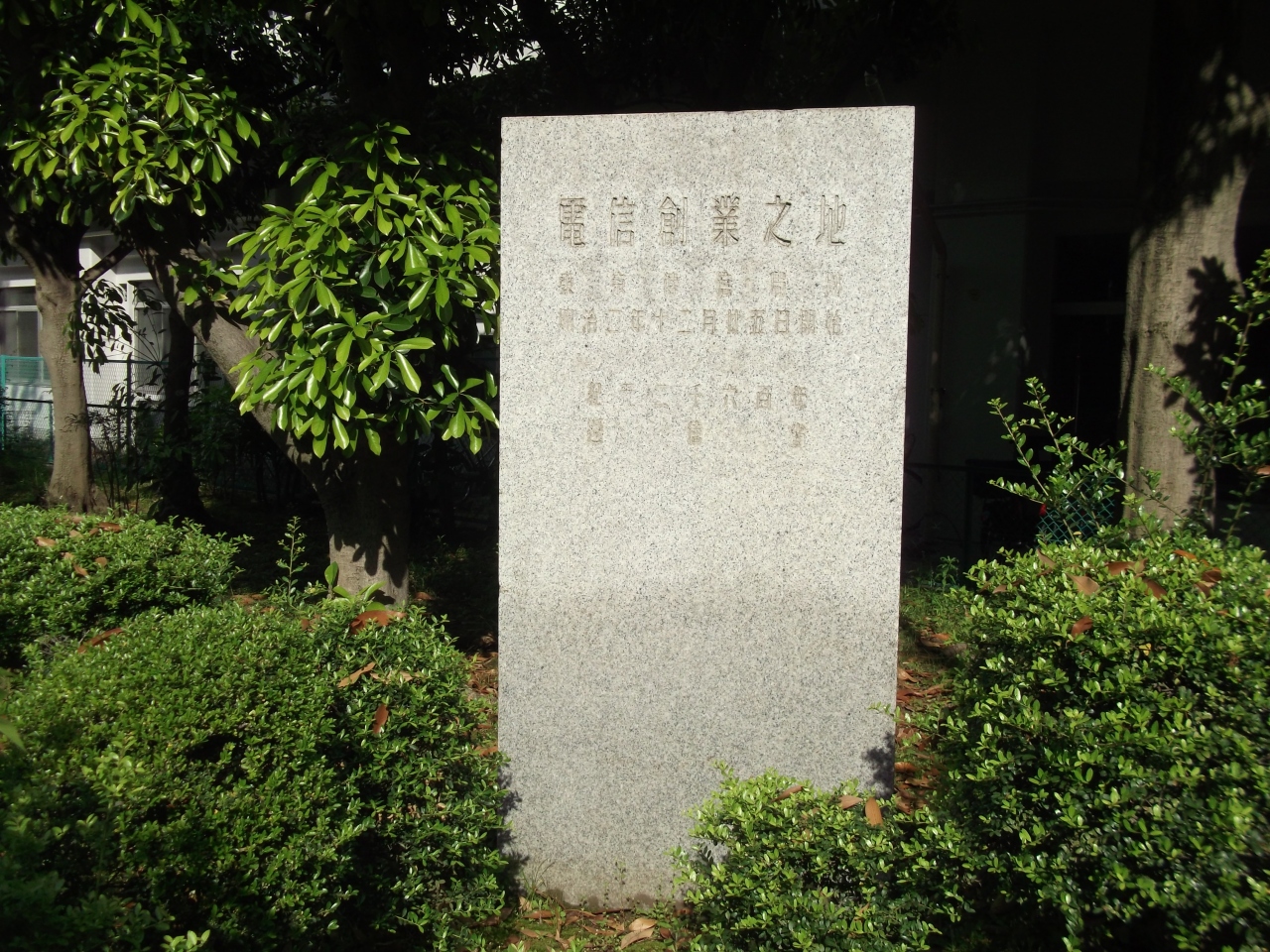 聖路加ガーデンからほど近い、あかつき公園向かいの都営住宅前の植え込みの中に、この石碑が立っていました。明治2年にこの地で、横浜市との間で日本最初の電信が行われたのだそうです。その功績を残すため昭和15年に石碑が建てられました。歴史の1ページを後世に伝えてくれる場所になっています。