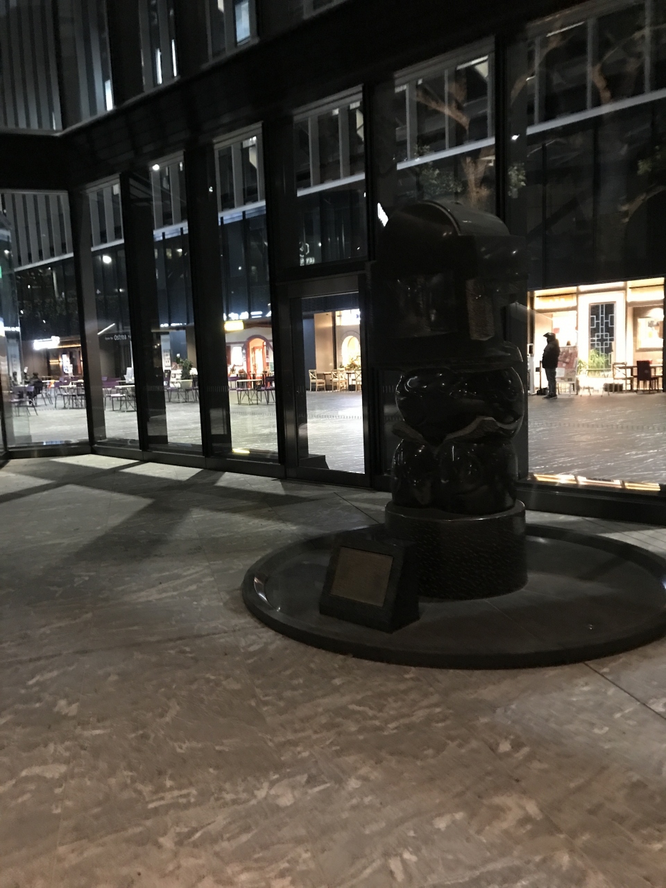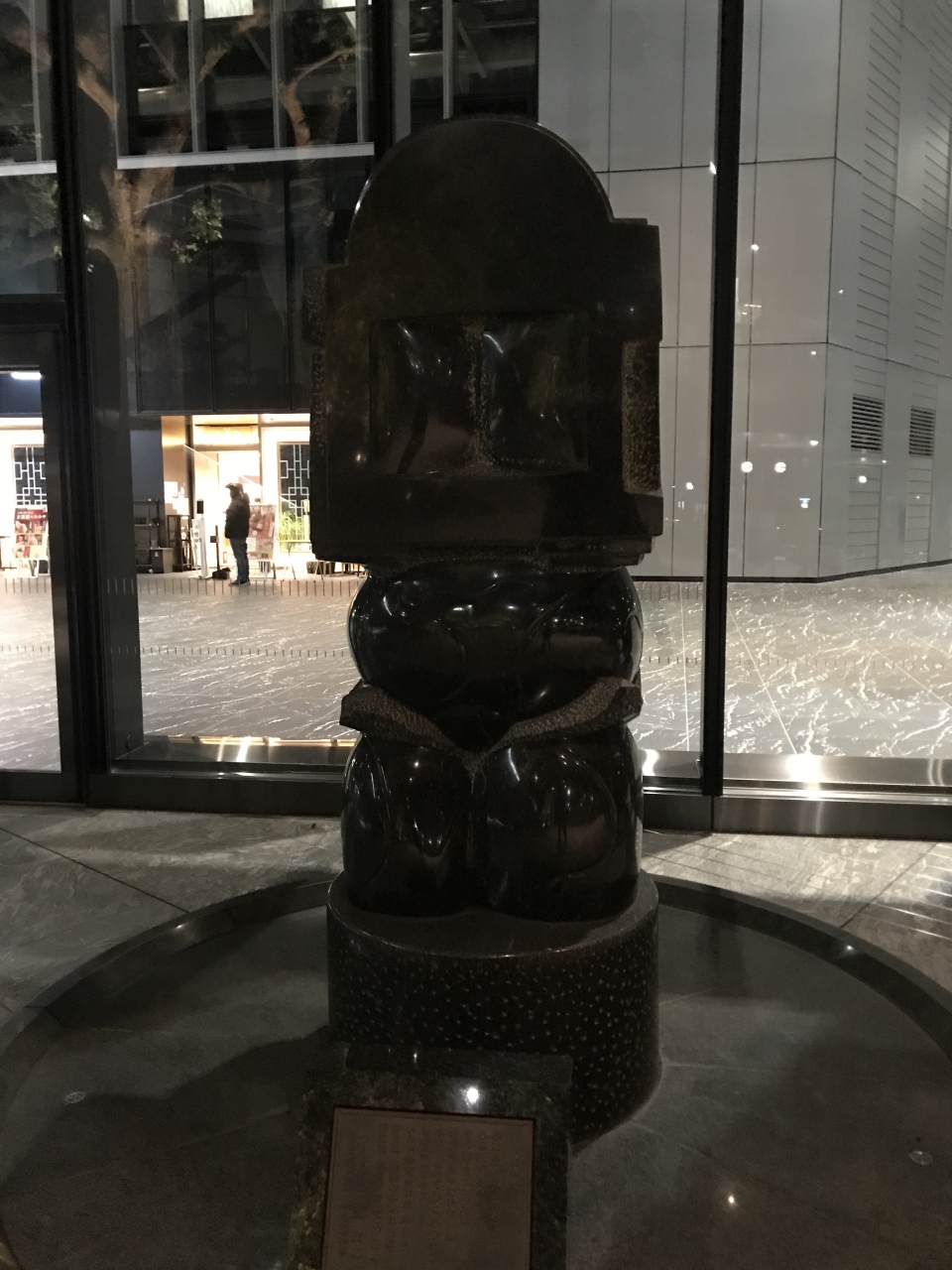 出雲大社の弁財天のようで黒っぽい不思議な形をした石像でした。
