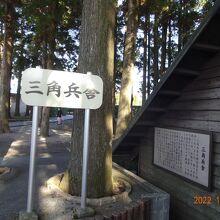 平和公園の中を散策していると、三角兵舎を再現した建物がありました。