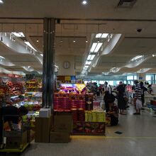 那覇空港の2階の国内線出発ロビー階。ANA側にもJAL側にもお土産物屋さんがぎっしりですが、南豊商事はJAL側の滑走路を背景にしたメイン的な場所。ただ、ここは一つのお店ではなくて、いくつかのお店が集まっていて、南豊商事はその通路に面した側ですから、ロケーション的には一番いいところ。紅いもタルトを前面に並べてアピールしていました。
