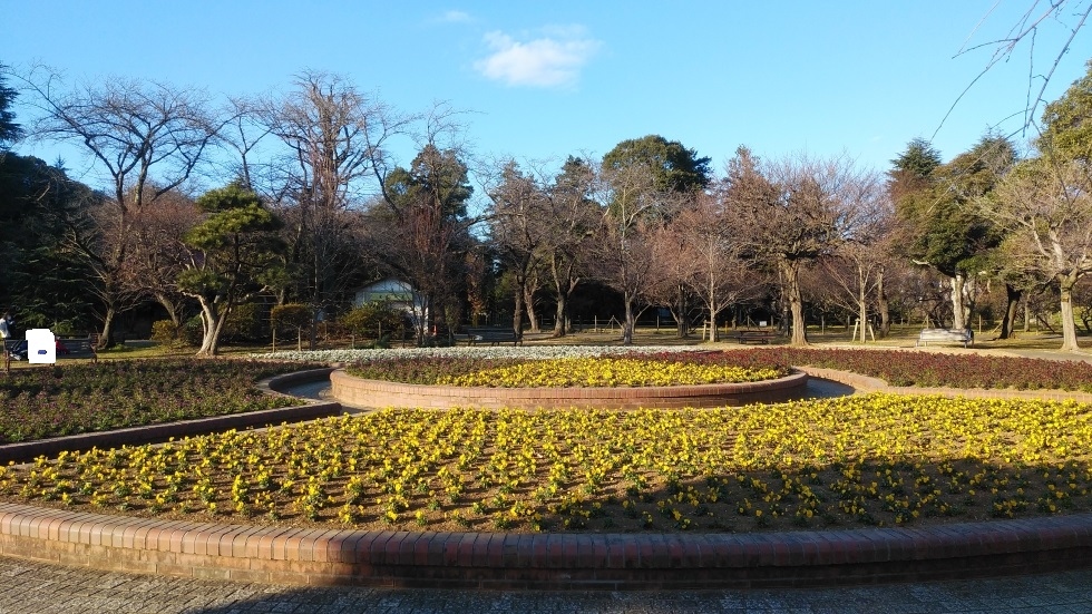 園内はバラ園があり、時期によっては様々な品種のバラが楽しめそう。また、中央には花壇も設けられ、花も楽しめる公園だと感じた。バラ園の奥には北原白秋の旧居も移築保存されており、見どころのある公園だった。