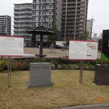 広い公園の大きな通り沿いに、二つの石碑がありました。