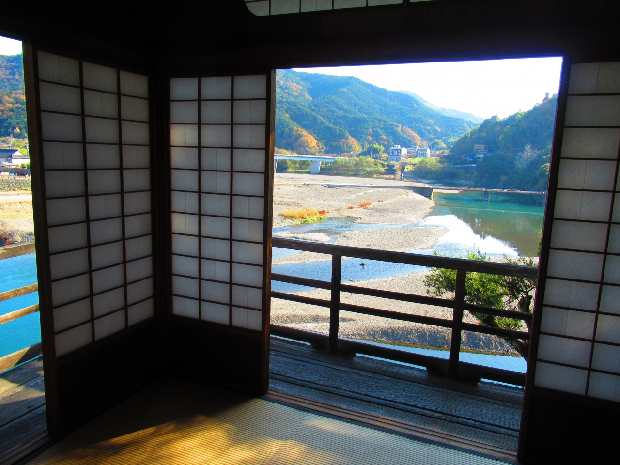 貿易商の河内寅次郎が築造した邸宅で、肱川の流れを見下ろす眺めのいい場所にあります。一番奥にある「不老庵」は川に突き出していて、建物そのものを船に見立てています。