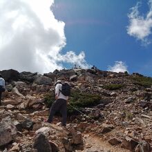 乗鞍岳畳平バスターミナルからお手軽に登れる山です。所要30分ほど。標高は2818mとなかなかの高山ですが、バスターミナルとの標高差はわずか116m。う~ん、登山とは言えないレベルかも。標高が高いので平地よりは疲れると思いますが…。剣ケ峰を登る方は無視してもらっていいと思いますが、畳平周辺を散策する方は時間潰しにでも登ってみて下さい。景色はいいです。