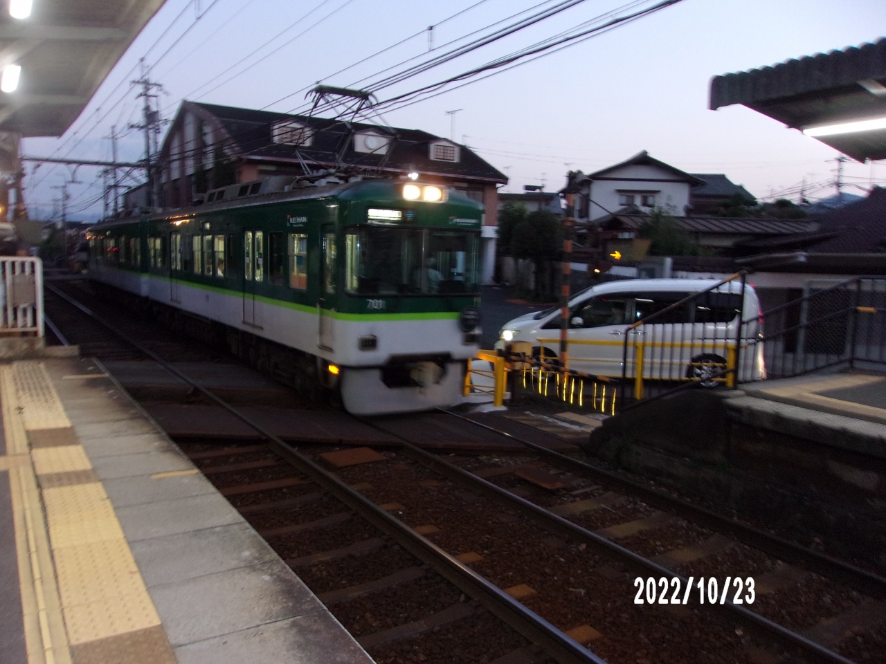 この京阪大津線 (京津線・石山坂本線)は石山寺駅から坂本比叡山口駅までの路線です。琵琶湖の西側を走っています。車両はスマートな印象です。グリーンの色が映えます。駅の間隔は狭く町中を橋いているのです。その車両は町に映えるものです。ICカードが利用でき町の人々の足のようです。