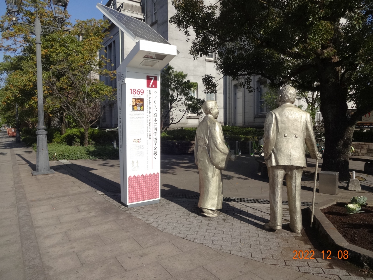 城山入り口の信号がある交差点の角に、この「ウィリス、高木に西洋医学を説く」の像がありました。