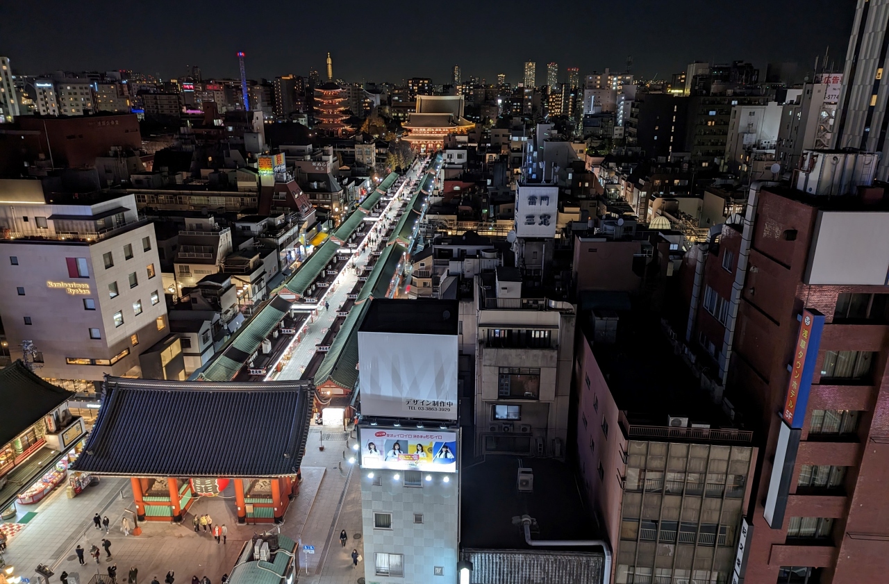 8階に展望台が有ると知り行ってみたら、なんと絶景が!雷門、仲見世通り、宝蔵門、五重塔、スカイツリーが目の前に見ることができるお勧めの絶景スポットです。